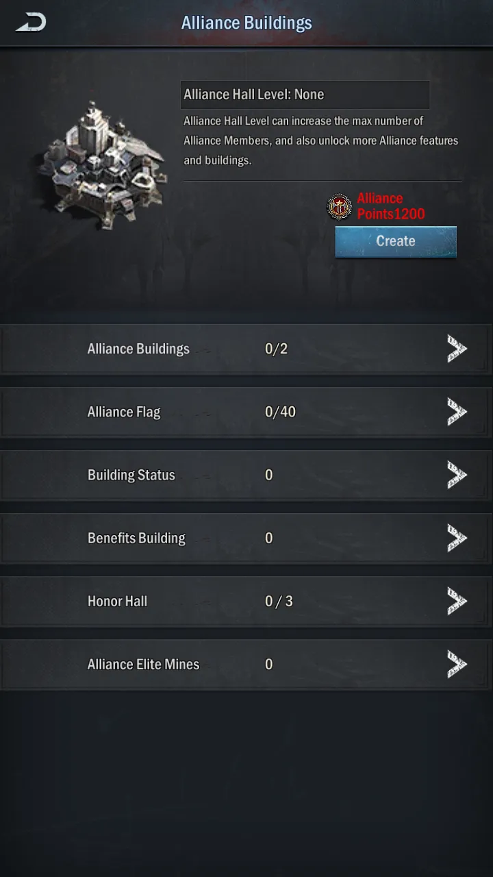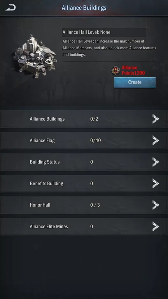 Alliances must have infrastructure to expand and exercise their power. Before anything else though, you’ll need to build an alliance hall, which costs 1200. Construction rights are typically only given to the alliance leader and any officers.