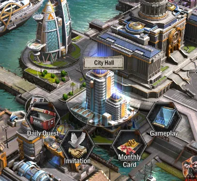 - The City Hall grants you access to certain features such as the daily quests, your referral code, monthly cards, and some tips if you care to read them.