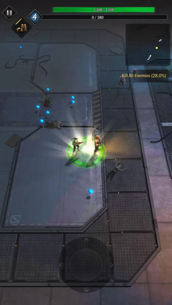 In Mercenary Survivor, you must survive long enough to complete your objective, as detailed in the upper right of the screen. This objective is usually to kill all enemies or survive for a certain amount of time. Thankfully, your characters aren’t unarmed. They’ll automatically fire on any enemies within range, and you can drag the control pad to move them around.