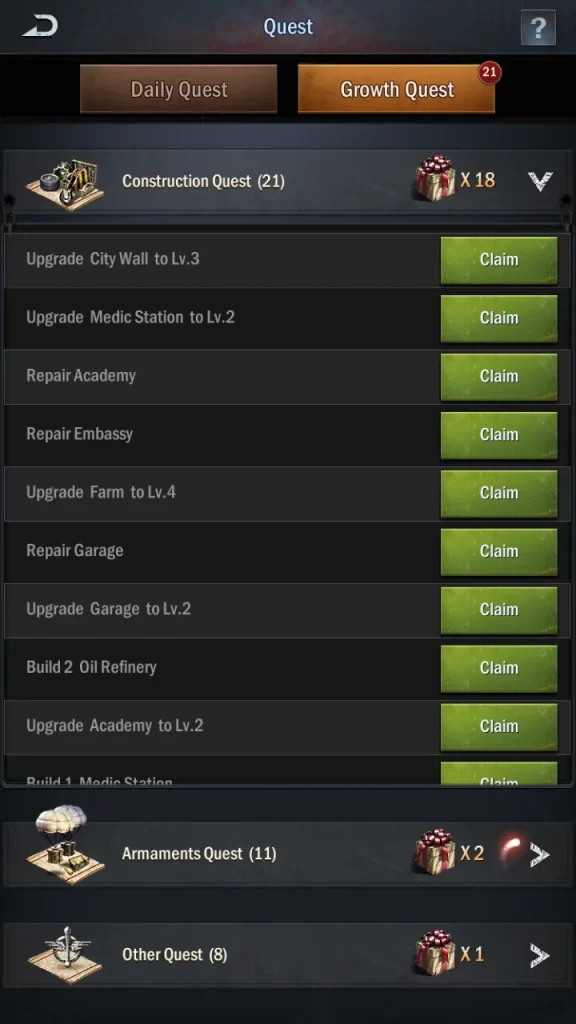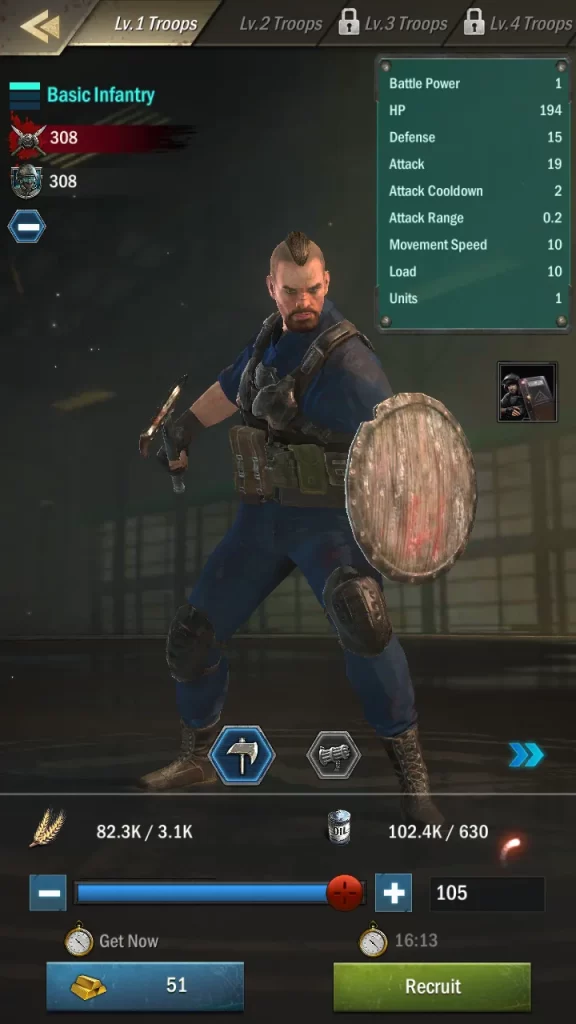 Both oil and food are important for virtually everything in the game, so it’s always a good idea to not only build as many Oil Refineries and Farms as possible but also upgrade them whenever you can, as a resource generator’s level improves the speed and efficiency at which it creates resources. Just as a reminder, you can upgrade most buildings for free (and instantly) in their earliest levels!