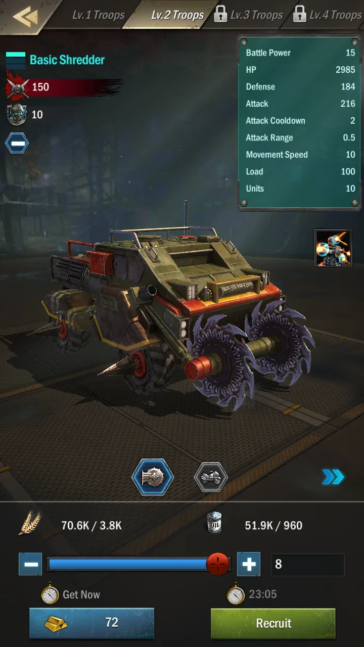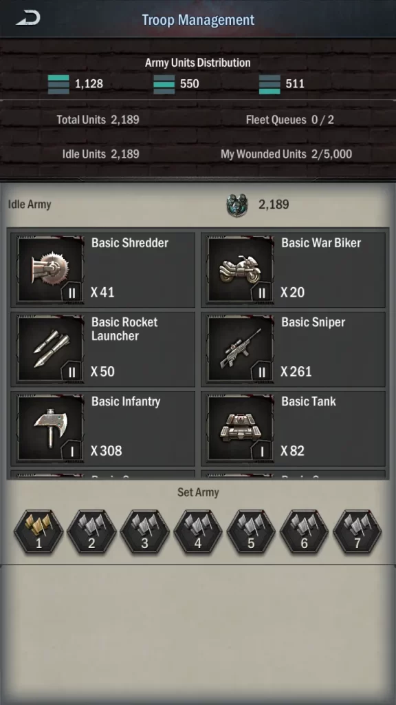 By tapping on the Garage, you can get a quick overview of your army’s stats, its total strength, and how many of each unit you have available. You can also create army presets here for easy army composition management, as well as deployment.