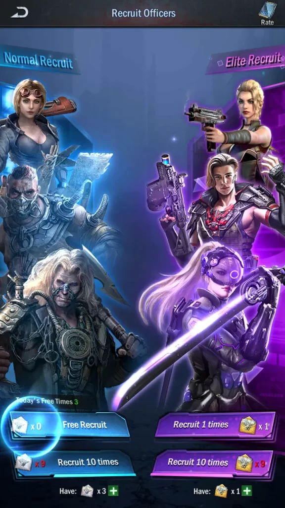 - Normal recruitment generates free attempts quite quickly, but don’t expect to get anything good. Elite recruitment has better odds for rarer officers and their fragments. Note that both banners can also yield non-hero items, such as resource packs!
