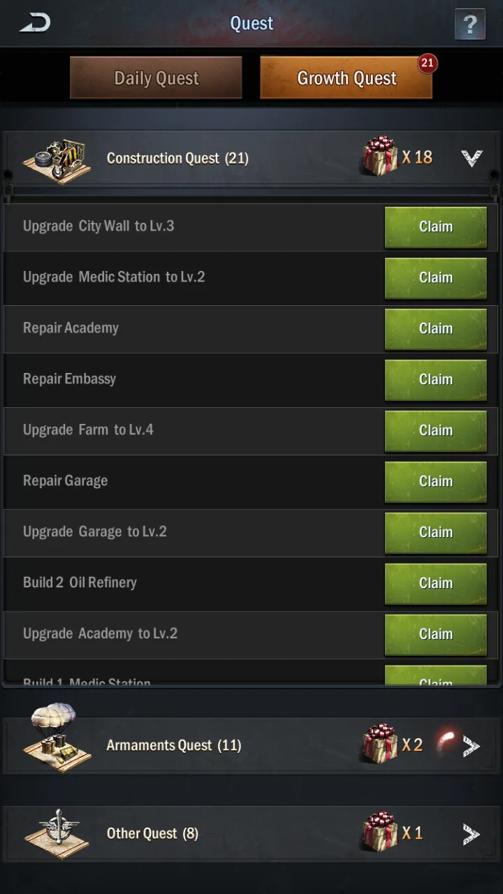 Both Camps and Factories allow you to train units to fight both the undead and other players. The Camp trains infantry, while the Factory builds vehicles. The higher the level of your Camp or Factory, the more units it can train at once, and the higher the tier of the units it can train.