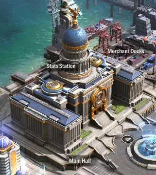You can tap on the Merchant Docks to get your daily login rewards if you missed them. At Main Hall level 9, you can also trade for items here via the black market.