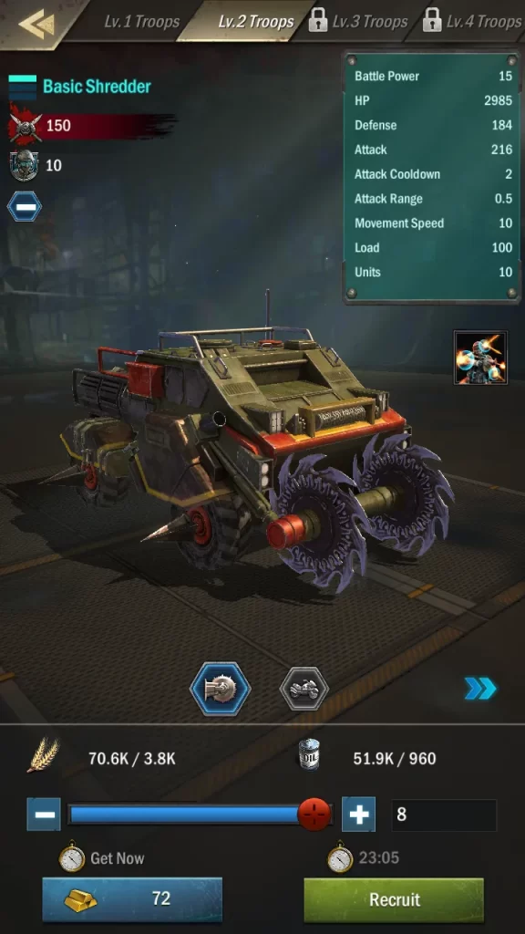 Lastly, each unit has a tier. Higher-tier units are more expensive but have vastly better stats and skills. To access these units, you’ll need to upgrade your Camps and Factories!