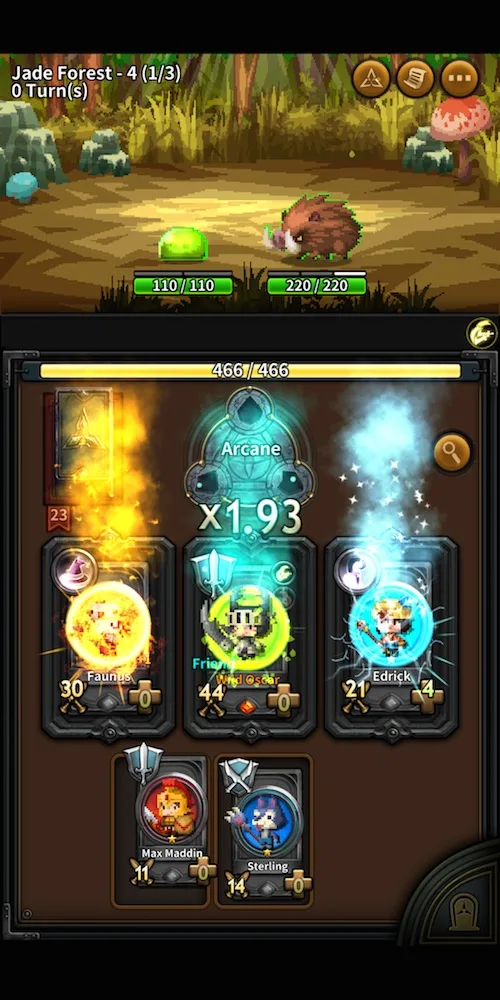 Since Arcane Straight: Summoned Soul is a game of strategy, you have to think ahead. This is the reason why backboard is here. It plays the role of an auxiliary troop source that can keep two or three cards until you need them. For instance, if you manage to achieve high combo but don’t need it, keep the two cards used for this on the backboard and kill the enemy with other cards. This way, you will have a higher chance to create high multiplier during the next turn, when new enemies appear.