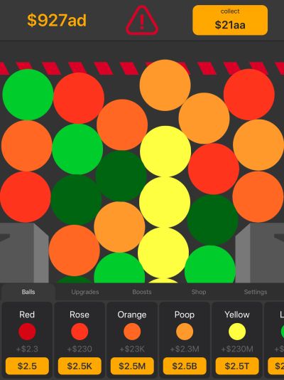 After unlocking your first ball, you will be able to upgrade its value. The more upgrades you purchase, the higher the value of the ball will be. You might think that the value is hardly increasing, but once you reach higher levels of upgrades, you will see the value rise exponentially. Upgrade the balls as much as you can. If you are diligent, the value of the balls will eventually overtake the value of your factory upgrades.
