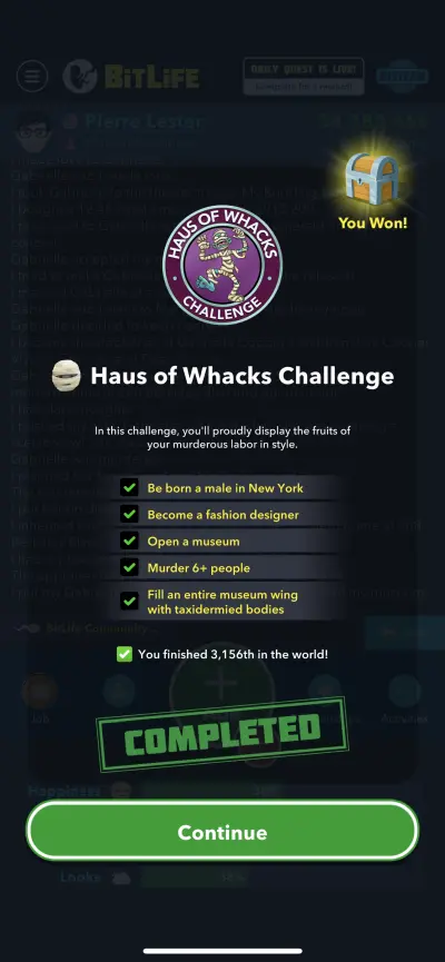 So if you’re trying to finish the Haus of Whacks Challenge (note the clever change in spelling) while wasting as little time as possible, let this BitLife mini-strategy guide show you what to do and how to complete each of the challenge’s requirements.