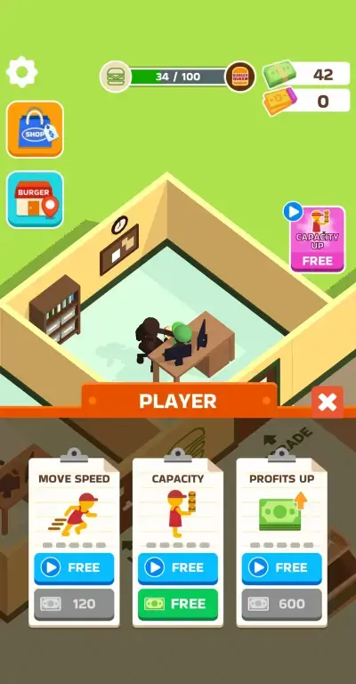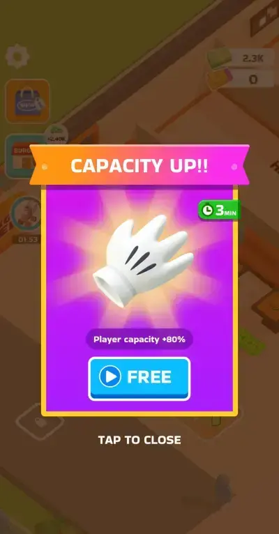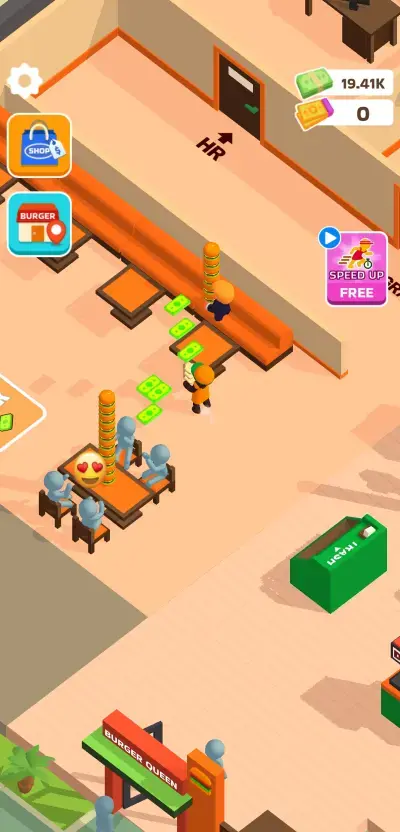 As you roam around your burger restaurant to collect cash and perform some needed chores, you may come across different icons that randomly pop up within the shop or on the right side of the screen. These are ad boosts that can give you temporary buffs like an increase in move speed or a boost in carry capacity, which will only apply for 3 minutes. If you are planning on spending some time actively taking care of your shop, then you should grab these ad boosts. Occasionally, you can also play a short video ad to receive a huge sum of cash instantly.