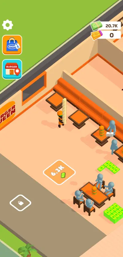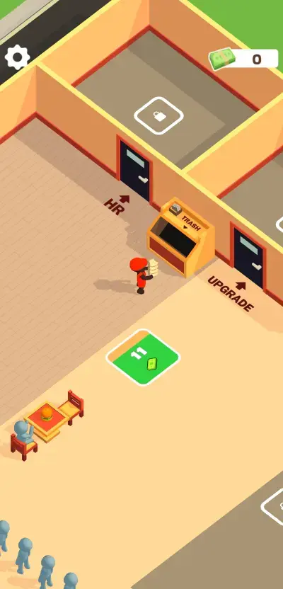 To start, your initial customers will be exclusively dining in so the most basic components of your fast food establishment will consist of a griddle to cook burgers, a counter where the orders of customers are taken and provided, a table set where customers will eat, and a trash bin to dispose of the burger wrappers. With customers that continue to pour in and burger production fully automated as well, you can start to earn income all on your own to save enough for the needed upgrades later on.