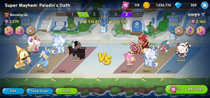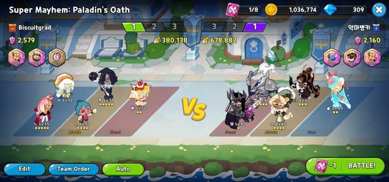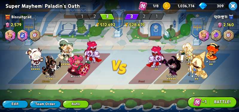 Super Mayhem is an auto-only PVP mode where you take 15 of your strongest cookies and organize them into 3 teams of 5 each. The old rules were for 15 of your cookies to fight the enemy team until all 15 of one teams’ cookies are dead. But now it’s a slightly less murdertastic affair, with victorious teams leaving to watch on the bleachers rather than continuing until they die then calling in the next team for the flour mill. Any tips having to do with PVP work here too (Don’t even try to hide Sea Fairy, everyone knows they’re that hidden slot in Mid if they’re there at all). Here are some notes specific to Super Mayhem.