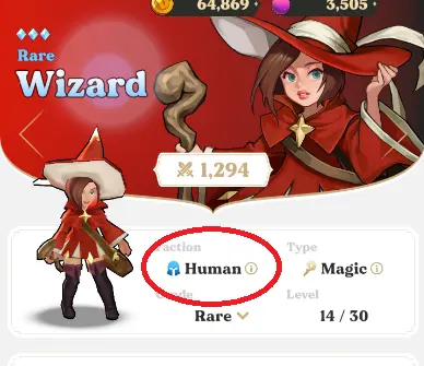 Each tower in the game belongs to a faction. There are three factions in the game: humans, beasts, and spirits. Humans use a blue helmet for their icon, beasts use an orange pawprint, and spirits use a green wing.