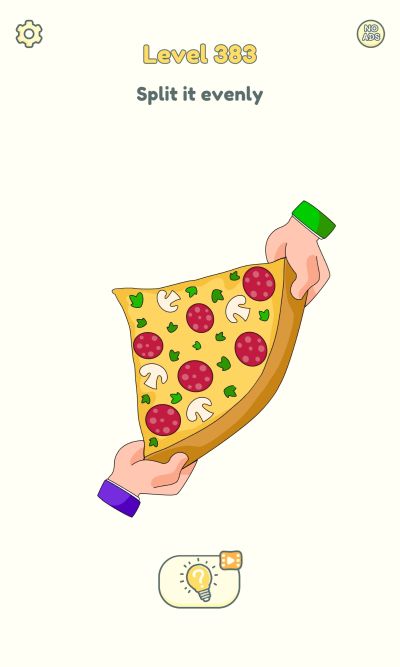 Level 383: Rub the middle of the pizza to split it in two evenly.