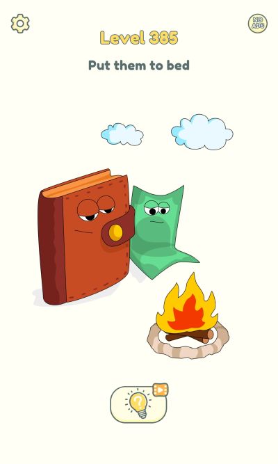 Level 385: Rub off the fire to put them in bed.