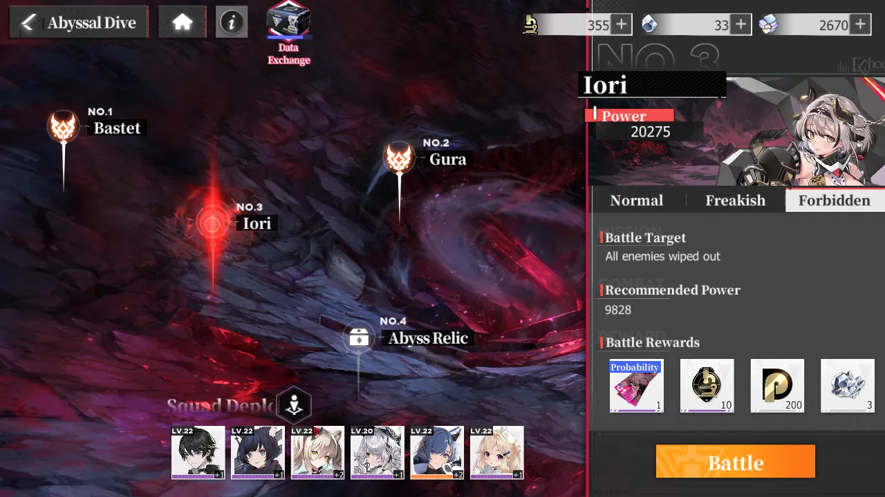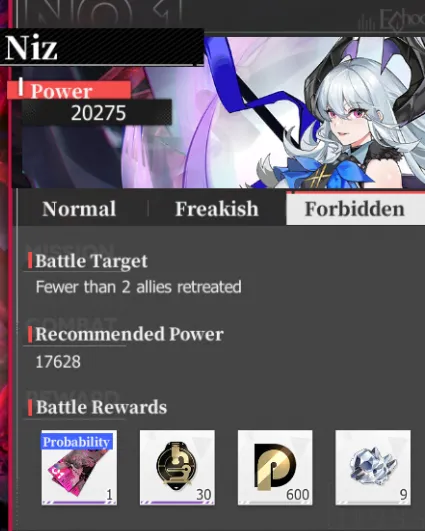 In essence, exploring the abyss consists of clearing stages of increasing difficulty. Stages come in three selectable difficulties on the right-hand panel – Normal, Freakish, and Forbidden, with Forbidden as the hardest difficulty and yielding the most rewards. There’s no shame in turning the difficulty down to Normal to rush through the abyss as quickly as possible and reap the most rewards!