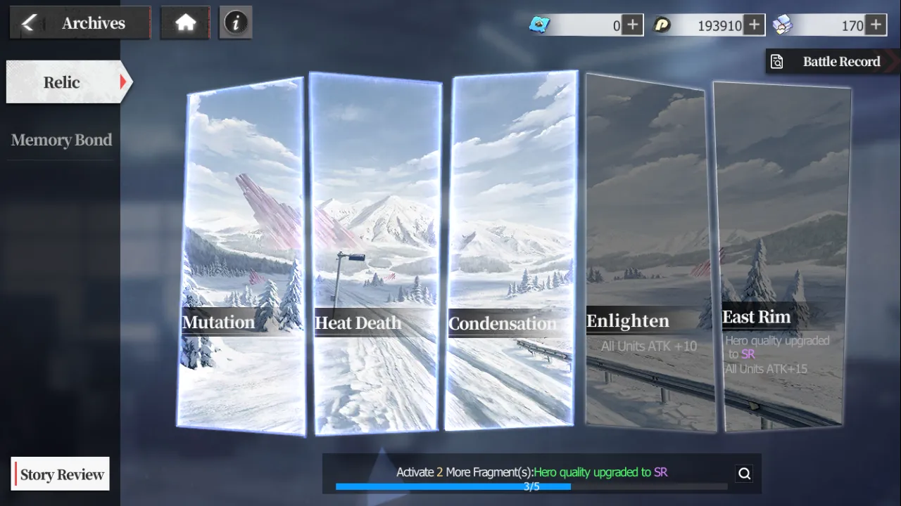- The Archives in the Complex (labeled Intelligence Center) allows you to file Relic Fragments and Memory Bonds for story chapters and regression stories you’ve already completed. Each filed fragment or bond nets you a roster-wide boost, and hitting certain thresholds nets you some nice bonuses.