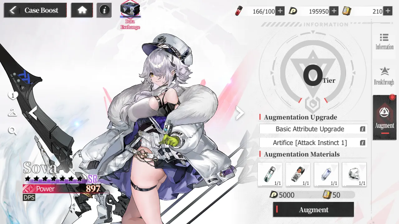 This is done by giving a Case Mission Data, which can be acquired from farming regular stages as well as from the complex. Each level increases a Case’s base stats by a small amount. It’s not much, but the extra numbers do add up. In addition, Cases need to hit certain level thresholds to undergo other strengthening methods.