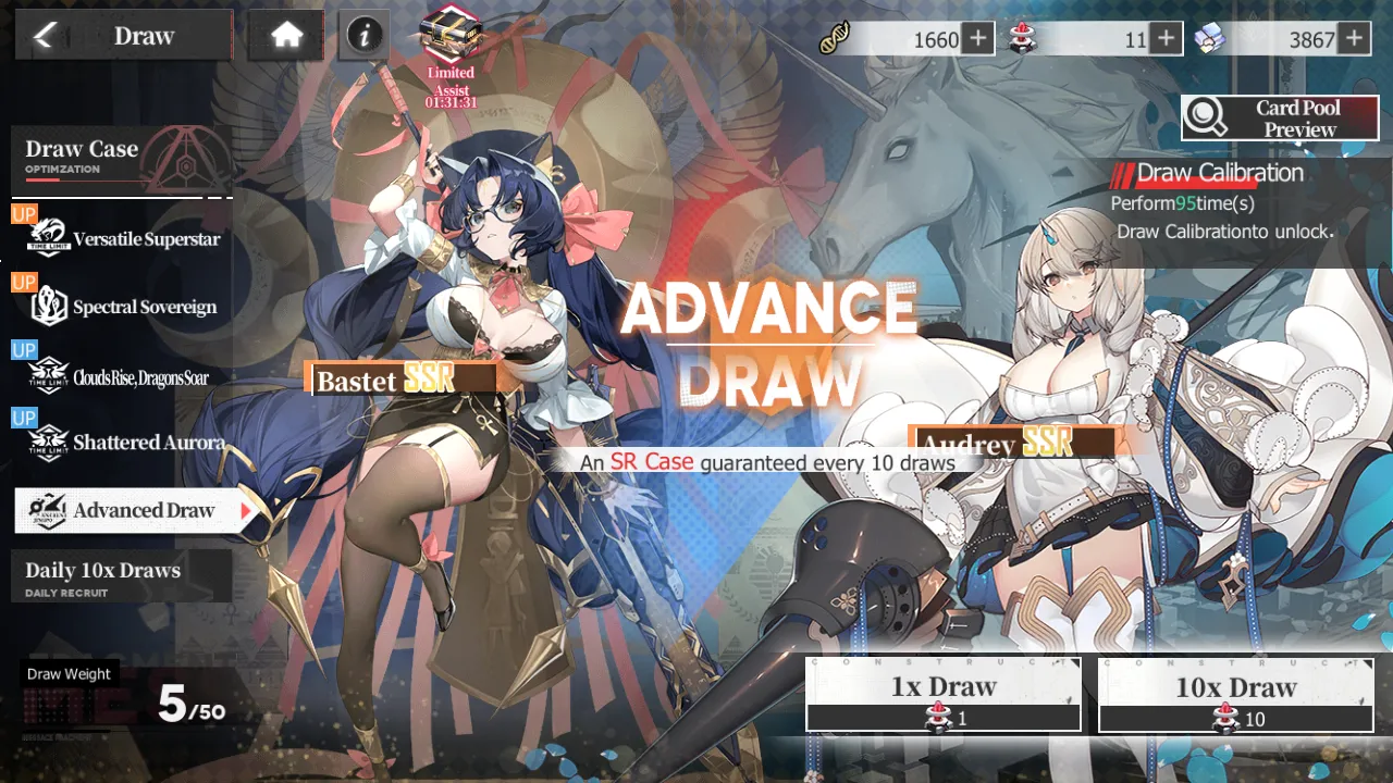 - The more you pull on a Case banner, the higher draw weight becomes. Soft pity is at 50 pulls (guaranteed SSR) while hard pity is at 200 pulls (guaranteed rate-up character).