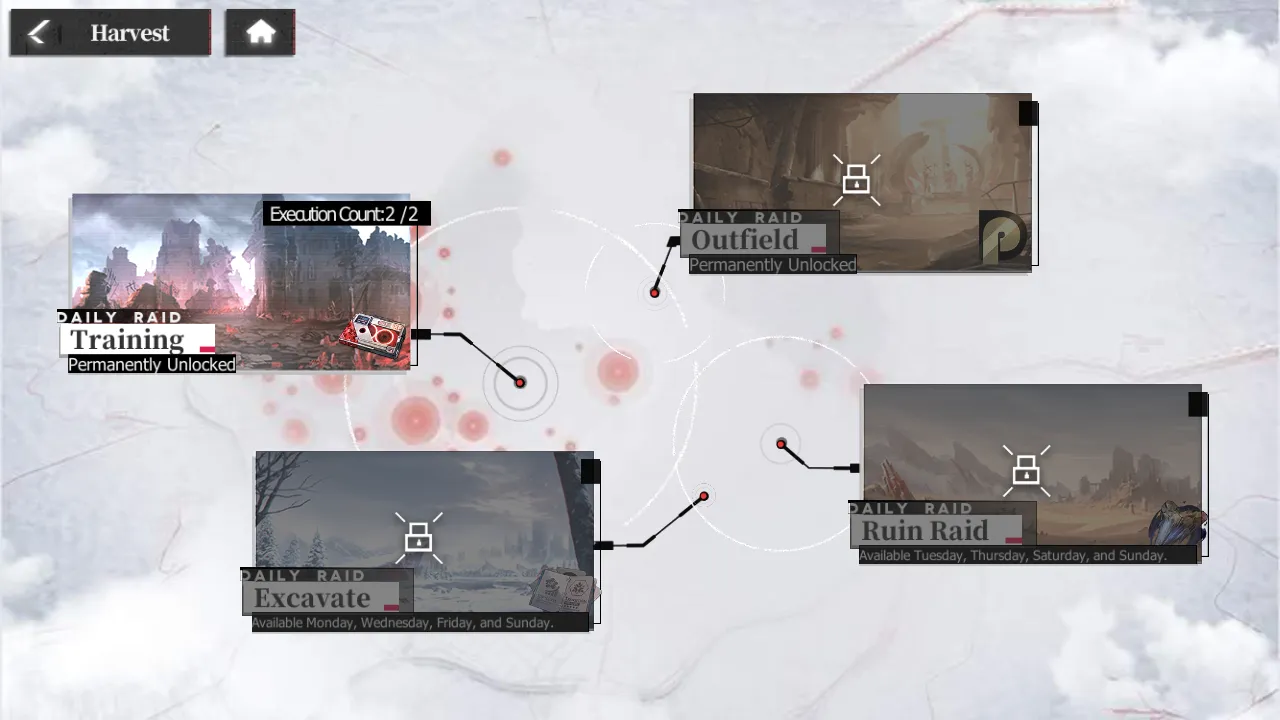 Harvest mode stages pit you against special bosses which will yield large amounts of a single resource type, allowing you to efficiently farm for materials such as Mission Data, Tribute Points, and more. These stages come in increasing difficulty; naturally, the higher the difficulty, the more prizes you get – especially on a perfect clear.