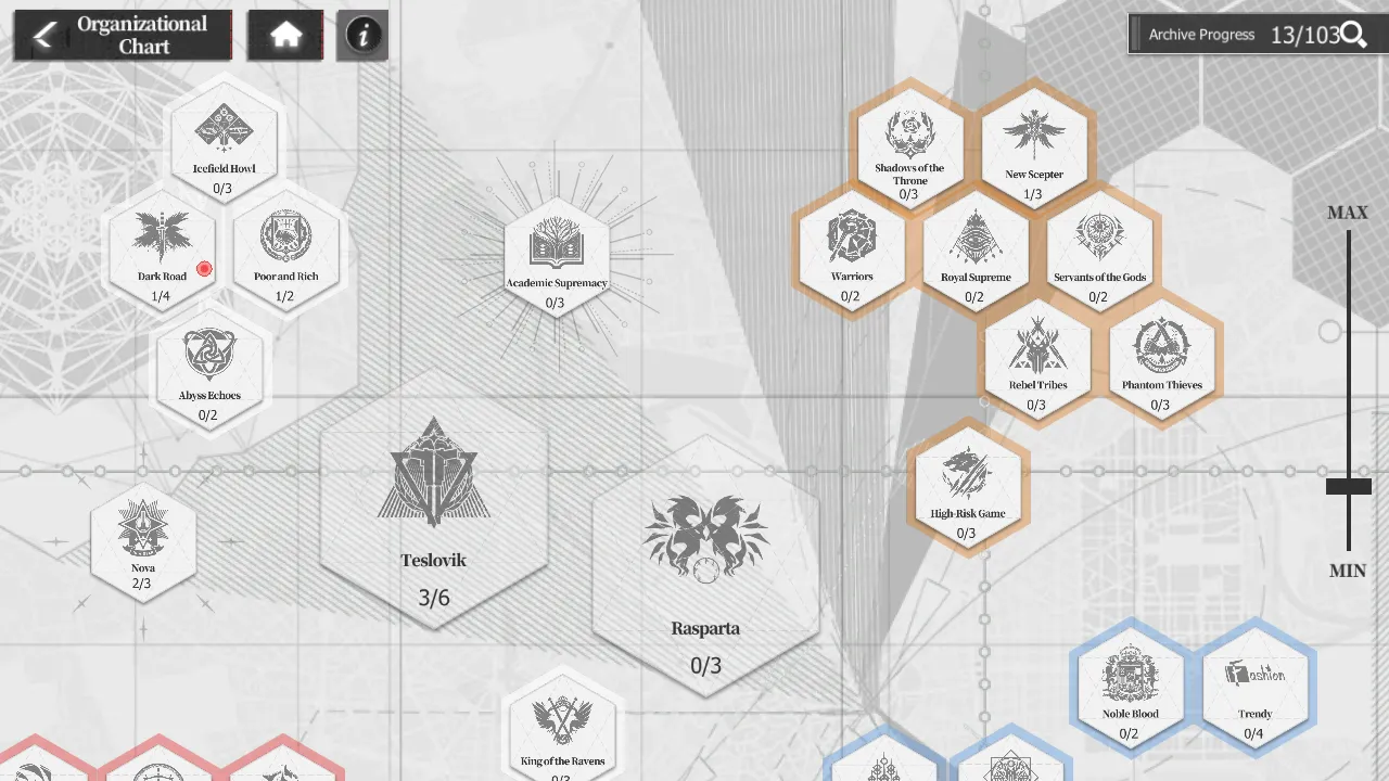 - By getting more characters from each organization and raising their affinity levels, you can grant each of those members a minor stat boost.