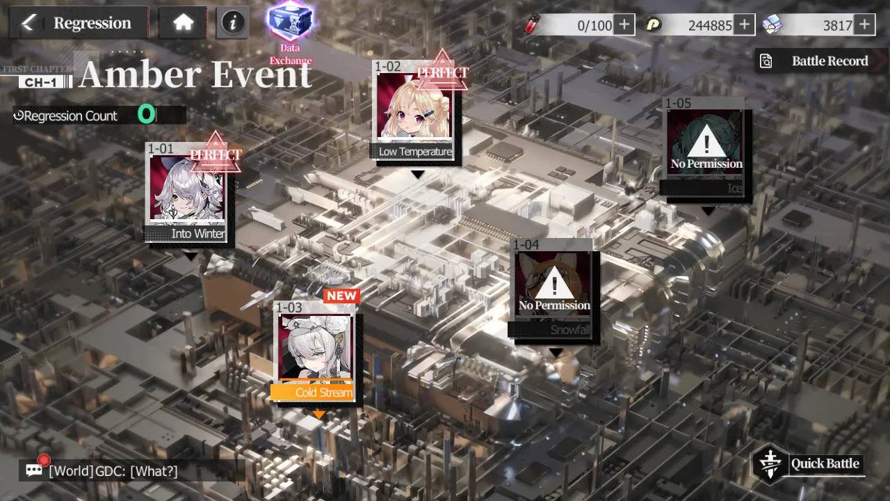 Regression missions are important not just for the Memory Bonds you get from clearing them, but also because they provide a reliable way to grind for the bio-chips of certain characters and get Draw Points for the gacha store without actually pulling. As always though, there’s a catch – on top of the stamina cost for battles in a Regression, you’ll also need to spend Regression Counts, a special resource that slowly regenerates over time – to a maximum of 10 counts. Still, these are very nice, so don’t forget to clear Regression battles whenever your count is full!
