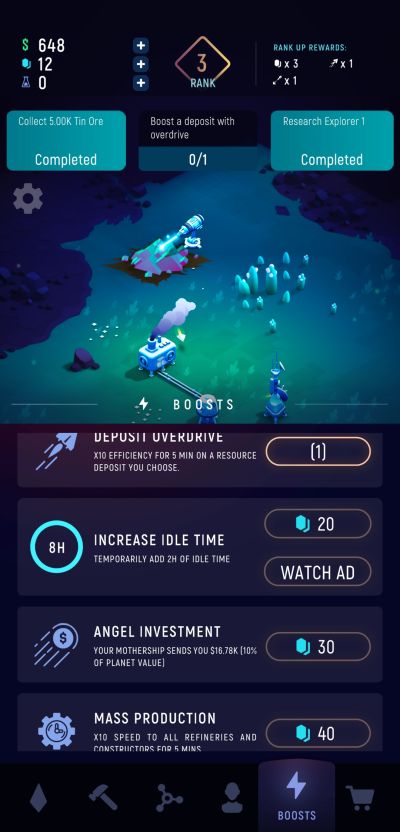 Despite its simple and rather straightforward gameplay mechanics, ExoMiner: Idle Miner Universe is designed in that adherence to set objectives, imposing prioritizations, and employing the right business strategies can tremendously improve profitability and rate of progression. The initial set of activities you engage in provides all the basics you need to know but the rest of what the adventure offers is relatively easy to pick up.
