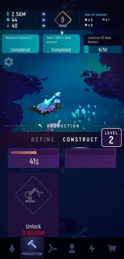 You will naturally start off at level 1 and there are 3 main objectives at the top of your screen that you need to accomplish before getting to the next level. These objectives all relate to the usual activities you engage in although some may be less usual than others. Mining a certain amount of a specific ore as well as refining them and producing other items count as simplest tasks and some targets require using boosters.