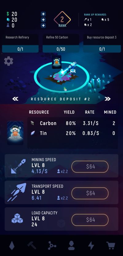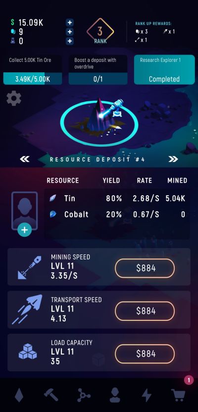 You will start off mining ores in just a sole deposit at the start of your adventure but you will naturally be able to discover and unlock additional ones that generate different varieties of ores. Each deposit has 3 upgrade points consistent across all of them although costs are different for each deposit, largely depending on the rarity of ores that can be obtained from them.