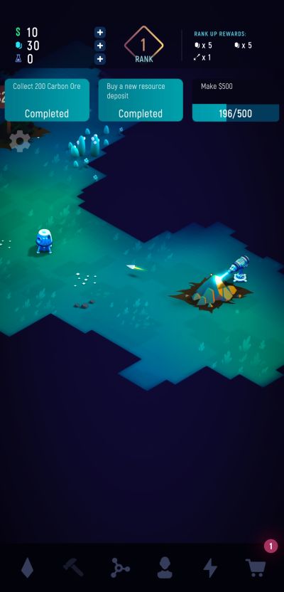 Although ExoMiner: Idle Miner Universe is built upon very simple gameplay mechanics, there are well over 60 ores, alloys, and ingots to discover and craft, making the process of prioritizing a little more complex the further you progress your space mining venture. To ease the burden of having tough choices all the time, ExoMiner: Idle Miner Universe provides you simple objectives from one level to the next as a guide for your progression.