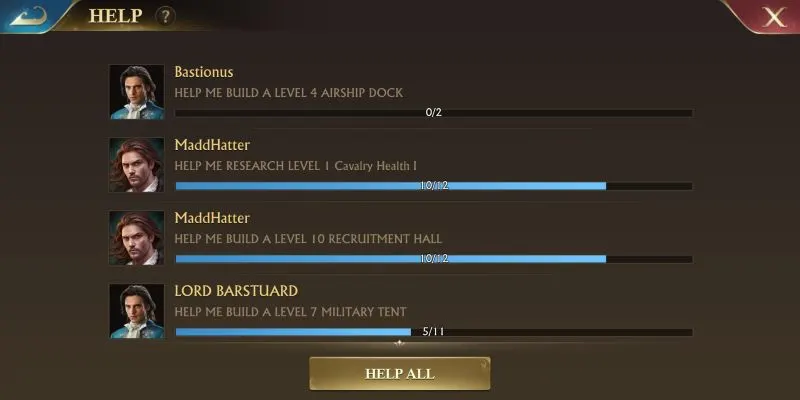 One of the most basic and biggest perk you get out of joining an alliance is the help you get for constructing and upgrading structures as well as the researches being conducted in your academy. Once you initiate a construction or a research, do not hesitate to tap on the help button to seek assistance from your fellow alliance members.