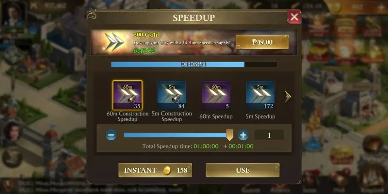 When it comes to speedups, you will receive plenty of it from a wide variety of resources. It is best to expend these to hasten the growth of your city especially if you are close to reaching a milestone that will enable more structures to be built or upgraded. As far as being careful is concerned, do not spend speedups that would completely end the countdown timer. The last minute of every progress can be sped up for free, which means that simply cutting down completion time to a little over a minute should suffice.