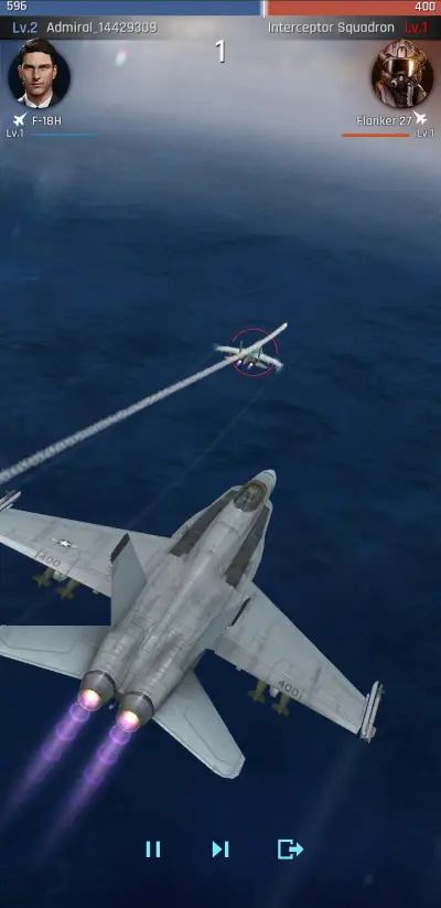 After your first jet is built, a fight against a small Armada squadron commences, and they are quickly driven off by your meager forces. Dogfights are purely cinematic, utilizing the power difference between squadrons to determine the winner.