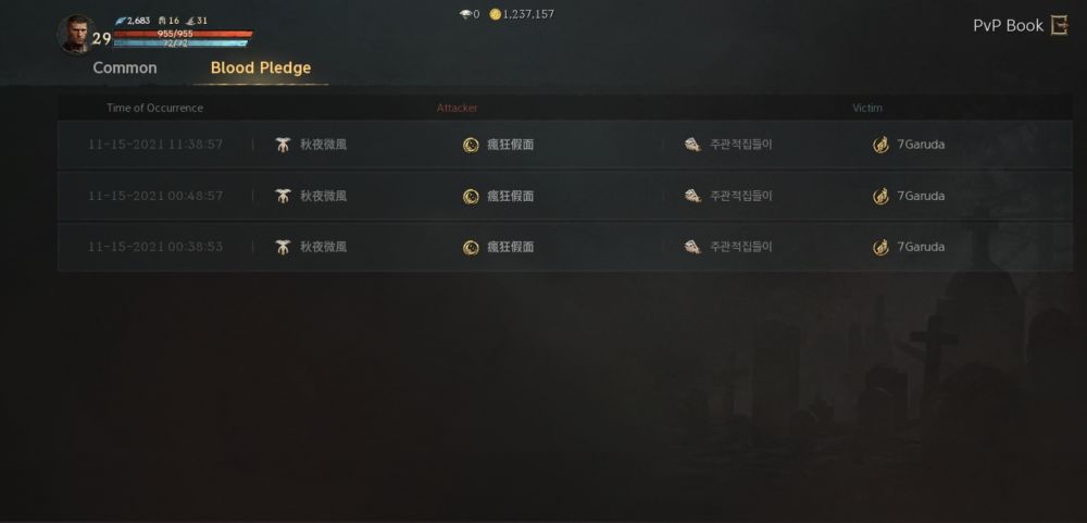 The PvP Book, which you can access via the main menu holds various other information and features relating to PvP combat. You can view players whom you have engaged PvP combat with and can even travel instantly to where they are to exact revenge in case they defeated you. The PvP Book can also show PvP history of fellow Blood Pledge members.