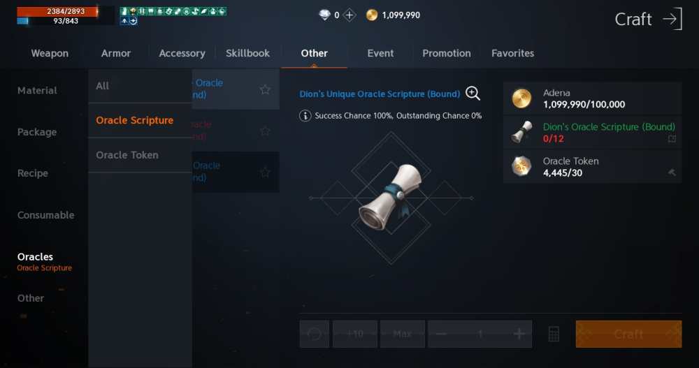 First off is to directly convert them to Oracle Tokens. This is great if you don’t really need Adena, you don’t want the rewards from that region due to being at a higher level, or if you’re feeling lazy. In that case, you can craft these scrolls directly into tokens via the Craft menu. Of course, there’s a downside to this. You’ll get less tokens than if you did the quests yourself, and you forfeit any other rewards the quest would give, like Adena or items.