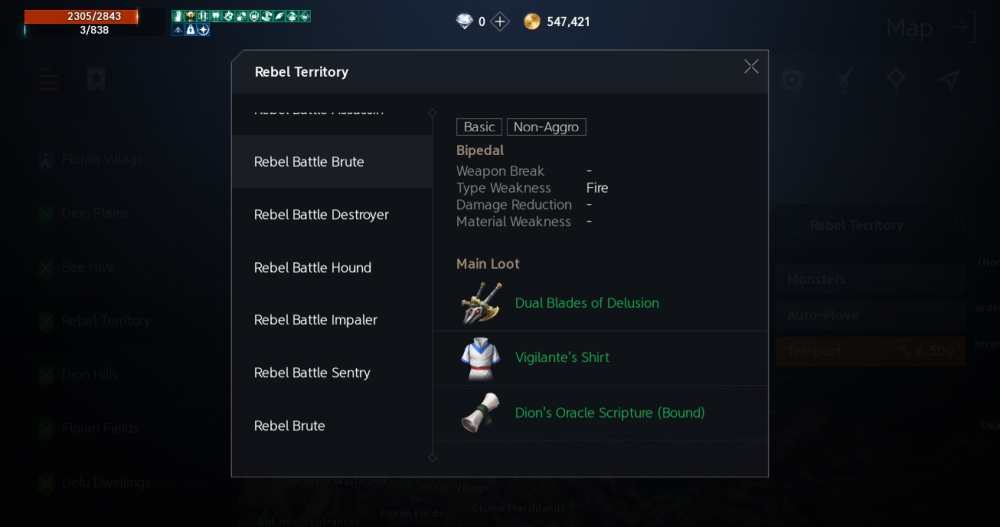 By tapping on an area on the world map, you can see what monsters inhabit it, as well as their behavior, and most importantly, their loot. Lineage2M doesn’t show drop rate, but I speak from experience here – even green items are horrendously rare. Be sure to stock up on potions and whatever other supplies you need before setting out.