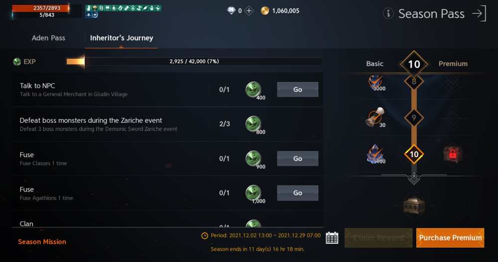 While it doesn’t give as many items as the paid Aden Pass, you can pay Adena – 1 million, as of writing – to unlock the premium tab. Most importantly, paying for the premium Inheritor’s Journey pass and getting it to level 10 nets you a sweet Epic Skillbook Selection Box which will give you a red skill book of your choice.