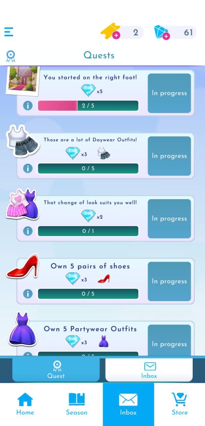In any case, you should dedicate a bit of time to explore the other menus available in Love Island The Game 2, particularly the inbox which may contain rewards as well as quests that you can accomplish. Quests not only reward you with valuable diamonds upon completion. The list of available quests more importantly serves as your guide towards progressing your romantic fantasy adventure.