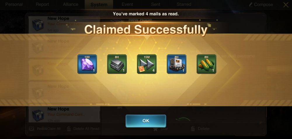 Performing certain tasks in the game, such as upgrading your Command Center, will let you earn system rewards aside from the rewards you can get from other avenues mentioned previously. Regularly check your inbox for system rewards so you can claim them on time.