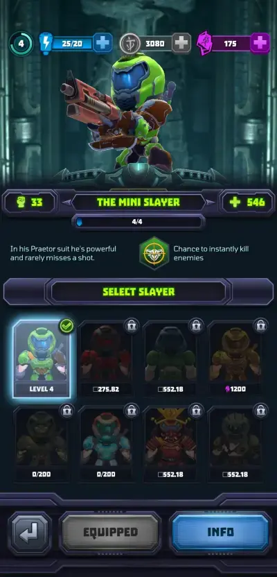 Though there are also other slayers you can unlock and use in Mighty DOOM, you will most likely be stuck with the Mini Slayer for a long time given that some characters can only be obtained through spending real money, while the rest requires collecting a lot of shards, requiring a lot of luck and grinding. As you expend energy and proceed through campaign or event runs and reach new levels, your account level becomes the level you can upgrade your slayer to.