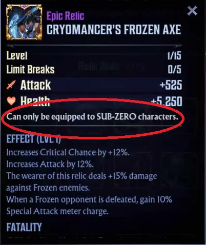 - Rarer Relics not only offer better stats but also allow certain characters to use their Fatalities to finish off the last foe in a stage.