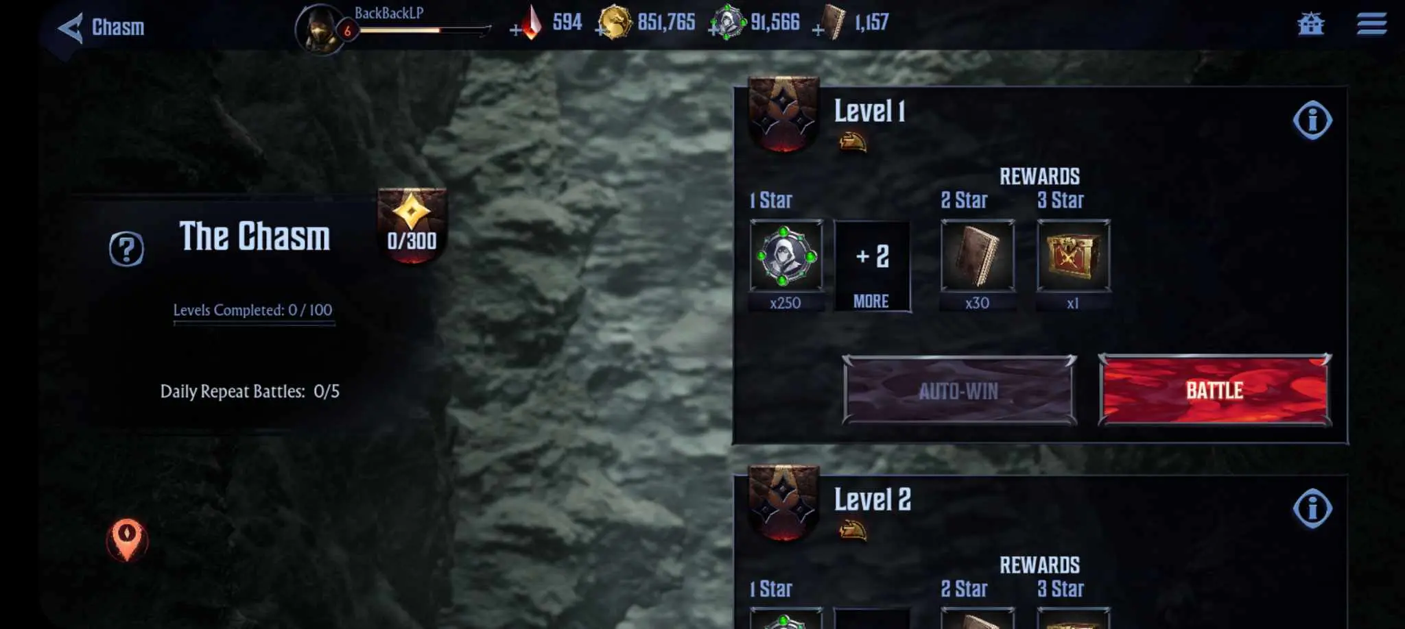 Just like Story mode, Chasm stages have 3 stars per level; the more stars you earn, the better your rewards. As always, check the requirements for each level – you don’t want to miss out on any of the prizes.
