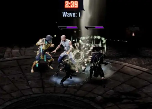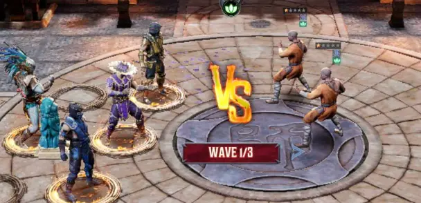 Battles in Mortal Kombat: Onslaught are automated. Your guys will run from the left to the right of the screen, clearing enemy waves until none are left. You can have 4 fighters on the field at once, while the enemy has a wave deployment system.