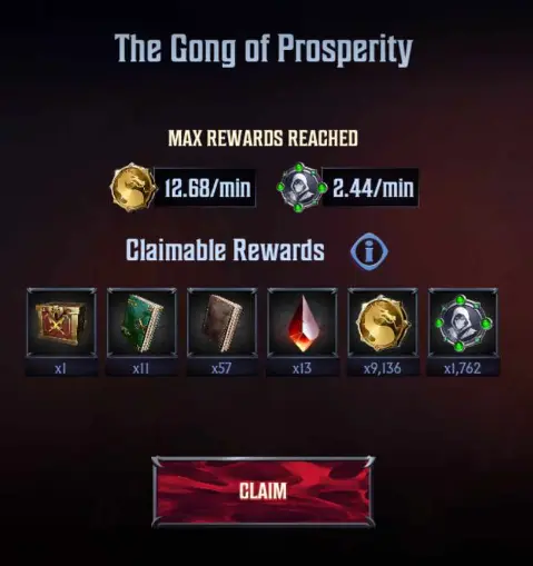 As this is technically Mortal Kombat: Onslaught’s AFK gains system, the accumulation and drop rate of items from the Gong of Prosperity is tied to your story mode progression. Push as far as you can to get even greater rewards, and don’t forget to ring that gong!