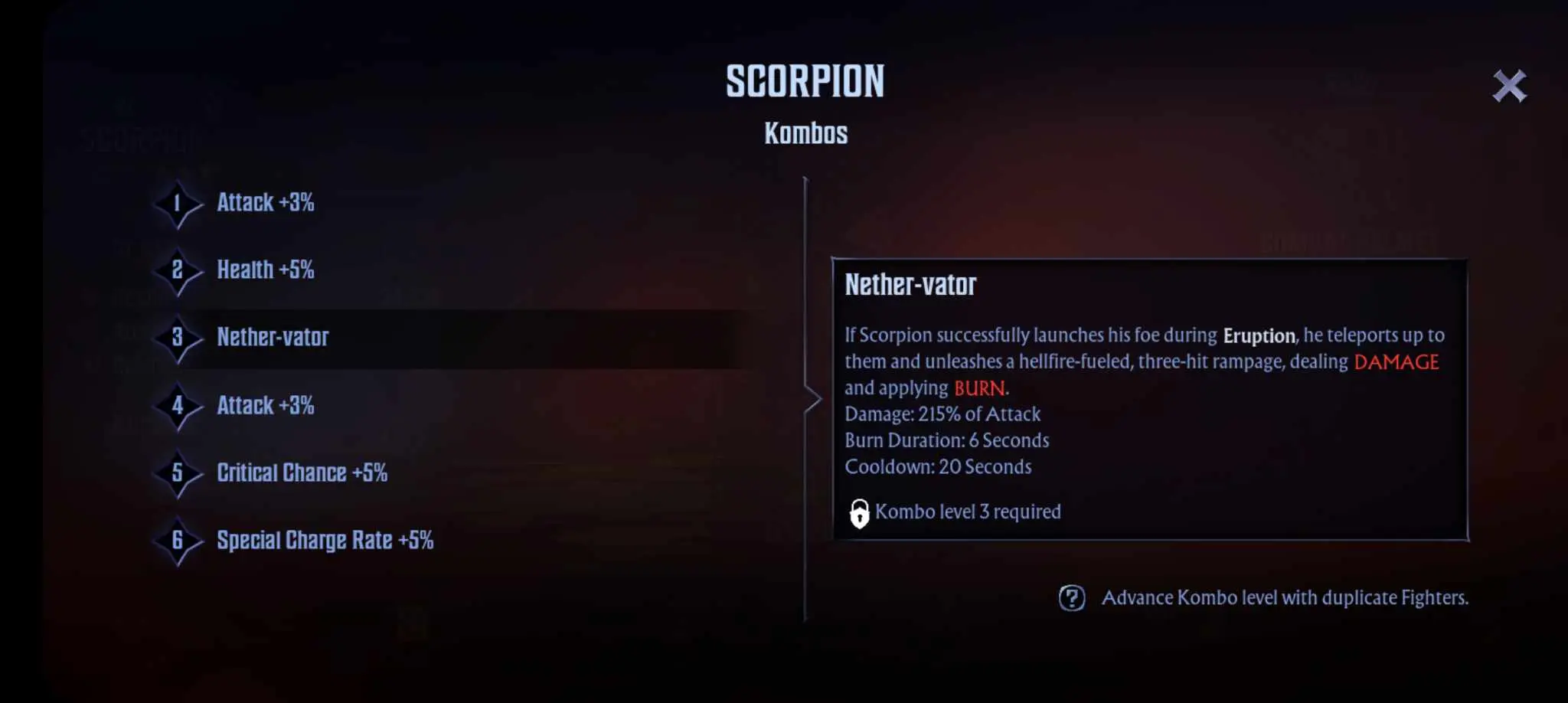 Numbers! Every fighter in Mortal Kombat: Onslaught has their abilities measured by numbers. Take note that the stat system of Mortal Kombat: Onslaught is quite detailed, so you’ll need to constantly keep stat names in mind. You can also refer to the in-game guide or this list.