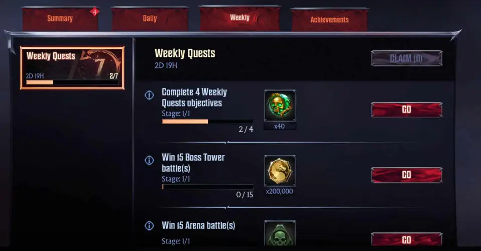 Mortal Kombat: Onslaught rewards you for regular activity via the quest and achievements system.