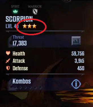 Each fighter in Mortal Kombat: Onslaught has a rarity, determined by the number of stars below their name.