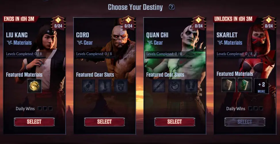 As the name might suggest, Boss Tower mode involves climbing a tower and felling several powerful bosses from the Mortal Kombat franchise. The higher you climb, the mightier the bosses become, but the greater the rewards. Just like the Chasm, the Boss Tower can be replayed to instantly claim rewards – you’ll need to 3-star a level to be able to sweep it. Don’t forget to check the requirements!