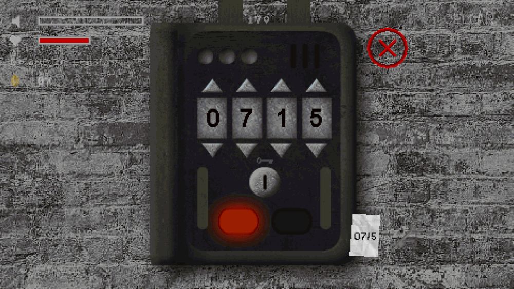 Retrieve the key and head back to the elevator power box, pushing the crate to reach it. The power box needs a four-digit code (from the note you retrieved) and a key. Enter the code and insert the key to start up the elevator.