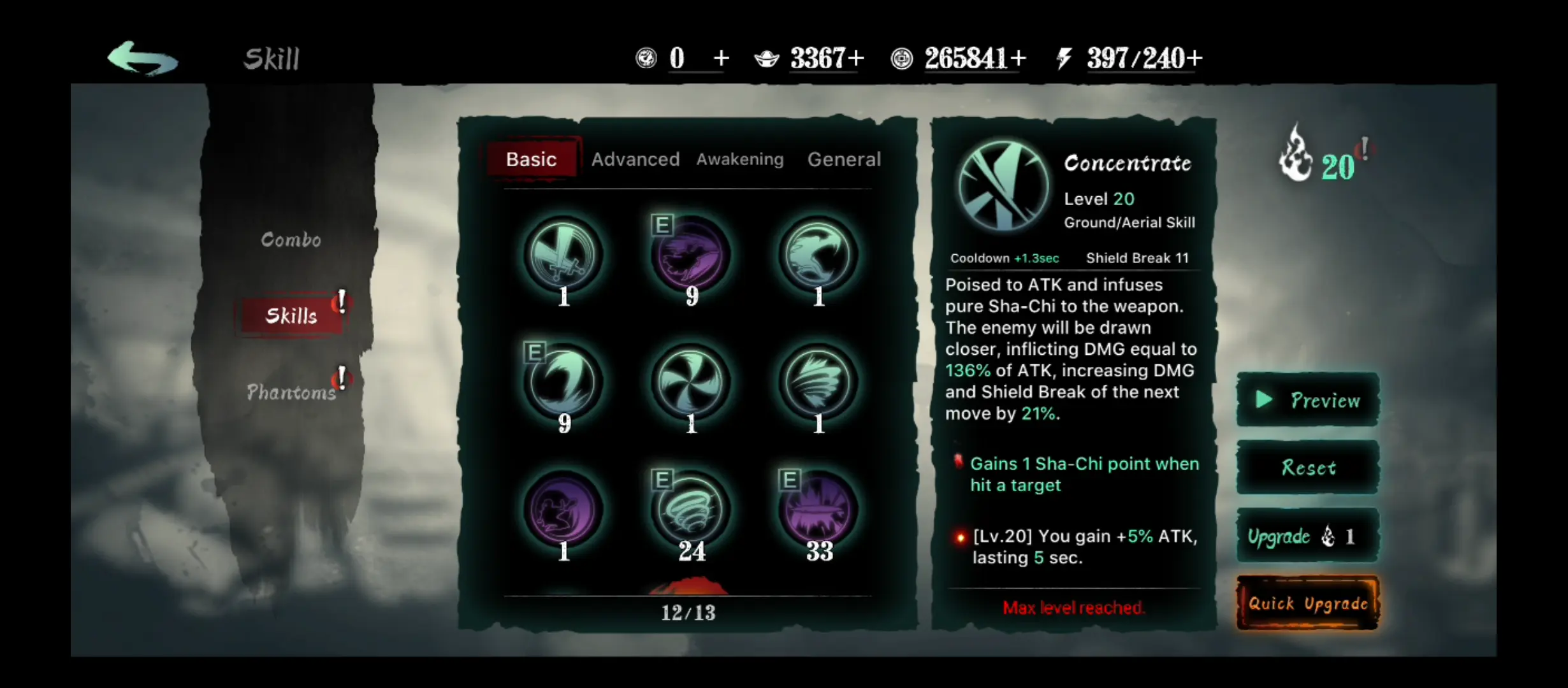 - Combo up! Keep consecutive hits in and generate those Sha-Chi points to maximize skill usage. Strong skills may require at least 2 Sha-Chi points to be used as their perfect forms. Additionally, executing longer combo strings may give a temporary stat boost to your character mid-fight!