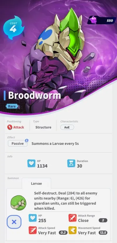 A structure that summons a larvae once every 5 seconds. Larvae self-destructs and deal AoE damage.